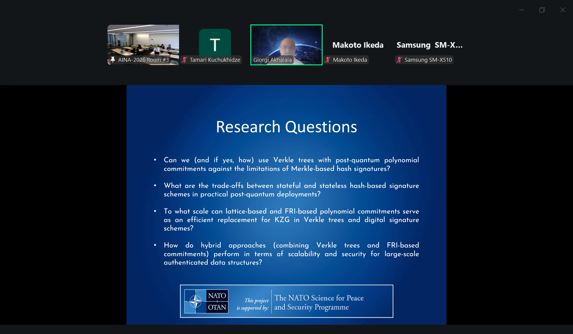 • Giorgi Akhalaia presented: “Verkle Trees and FRI-Based Commitments: A Hybrid Framework for Transparent Post-Quantum Signatures”