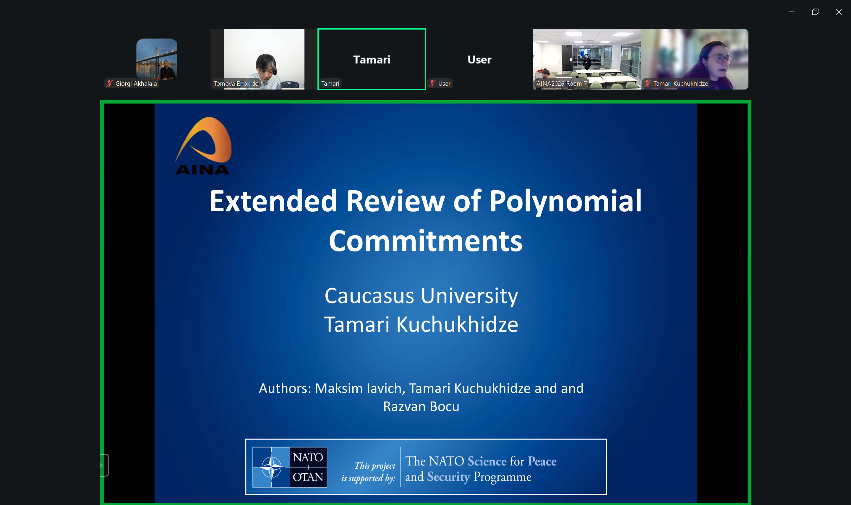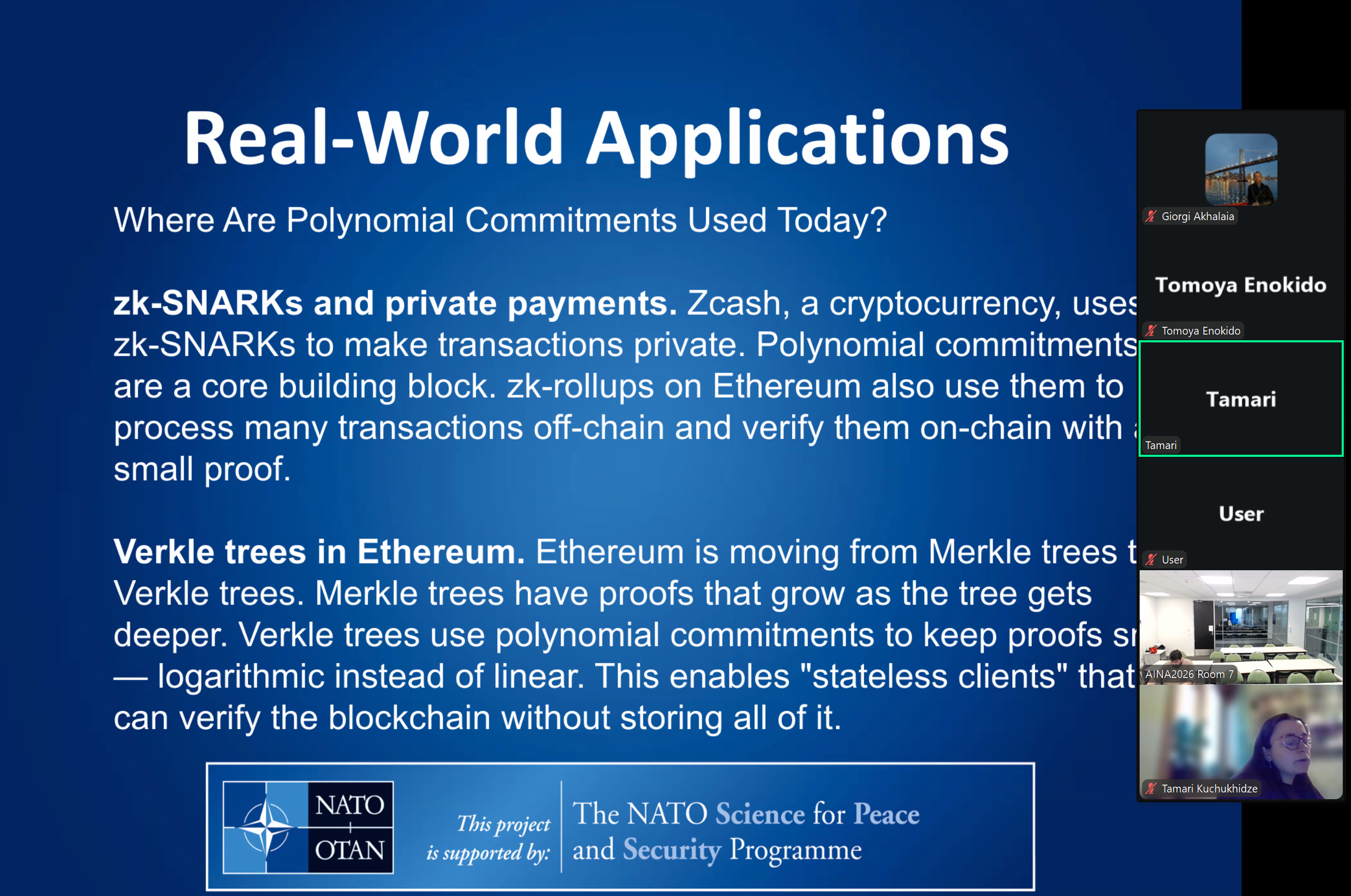 • Tamar Kuchukhidze presented: “Extended Review of Polynomial Commitments”